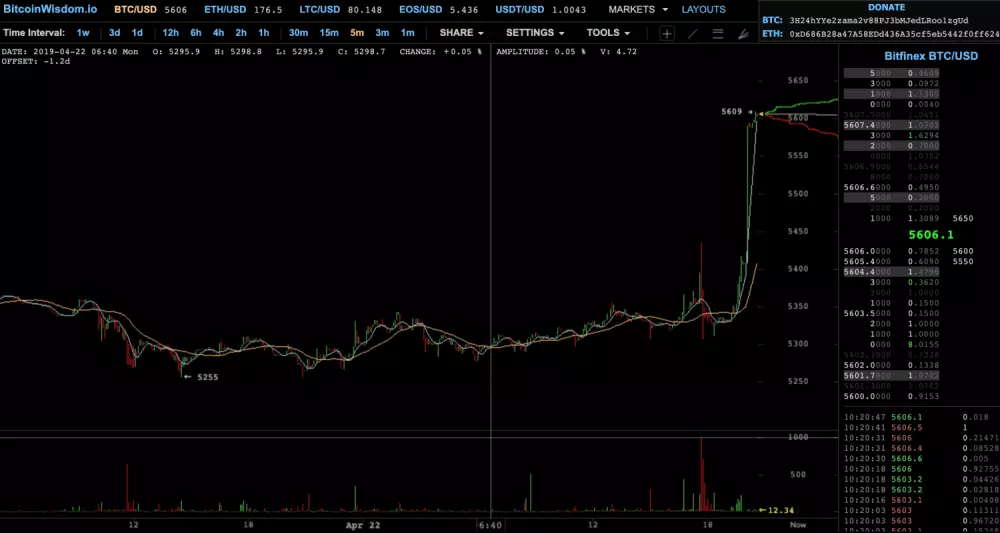 Obrovská post Aprílová pumpa je za nami a teraz to vyzerá, že sme svedkami ďalšej – tentoraz post veľkonočnej pumpy. Bitcoin od dnešného rána (8:00) posilnil o celých 200 dolárov a teraz sa nachádza na cene ľahko cez 5600 USD.