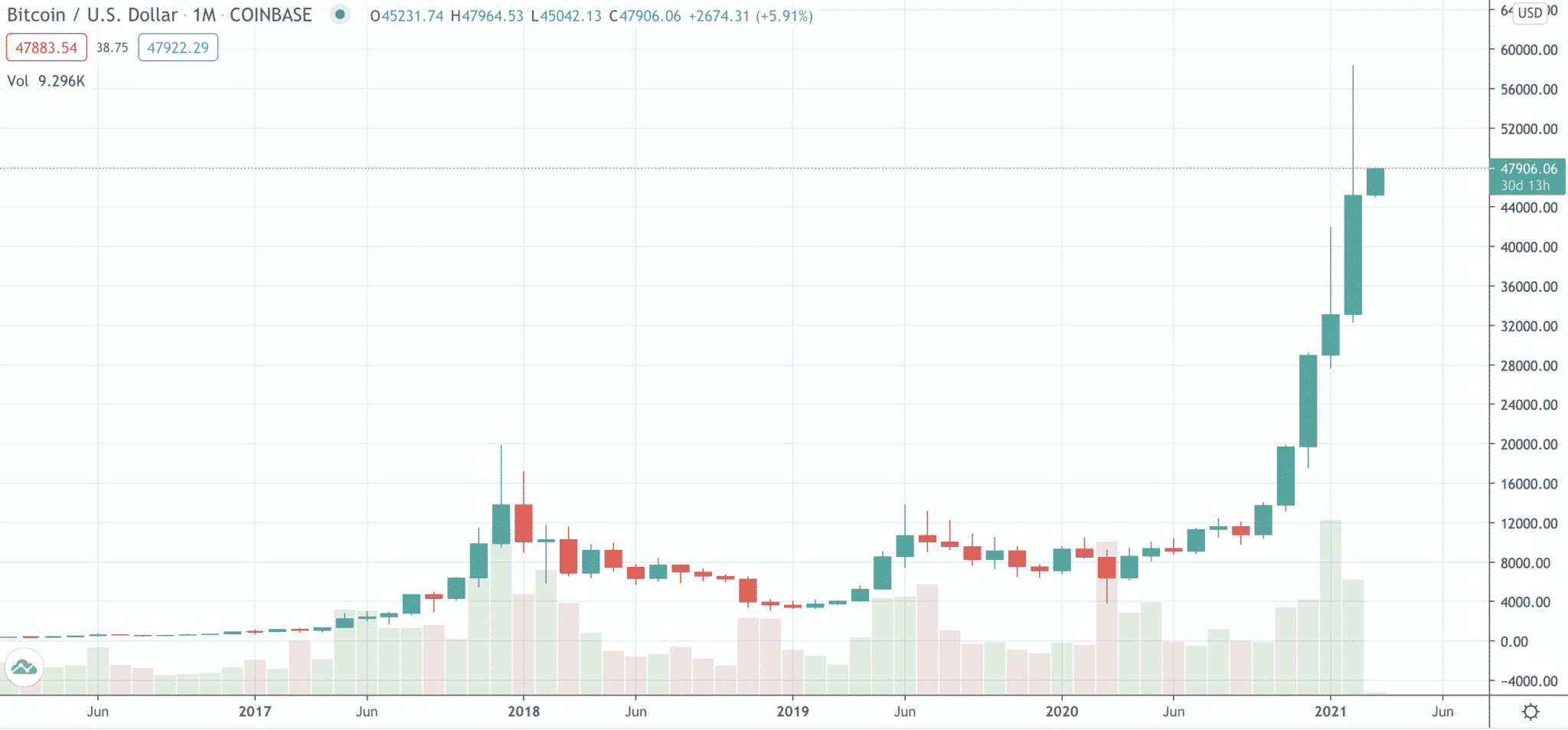 Monthly graf Bitcoinu