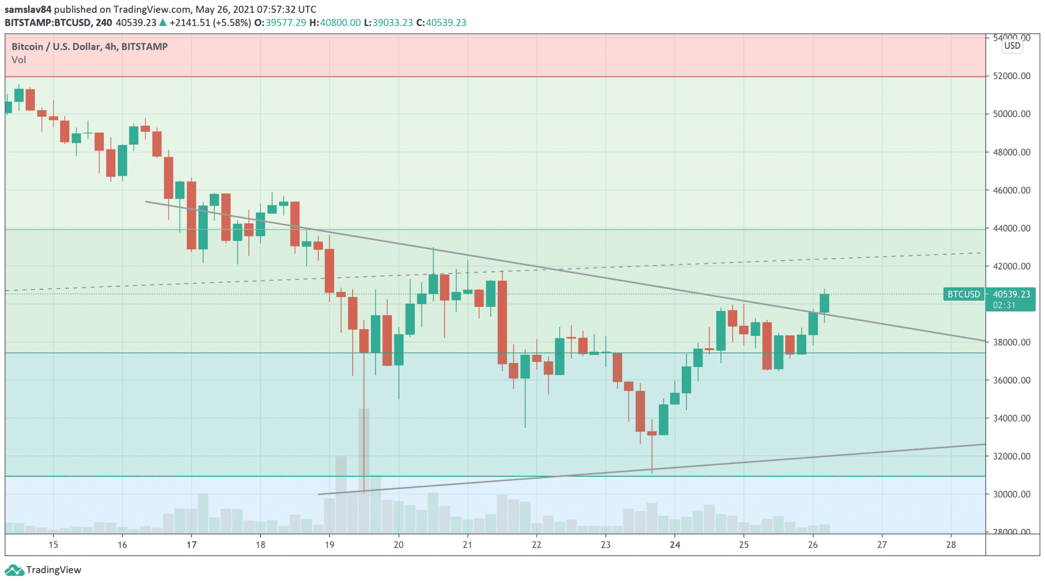 Trh s kryptomenami je tento týždeň bullish. Nedeľa bola pre Bitcoin katastrofa. Druhýkrát po sebe otestoval hladinu 30 000 dolárov a nakoniec vytvoril vyššie minimum. Od pondelka však všetky coiny stúpajú a dnes Bitcoin prerazil hladinu 40 000 dolárov.