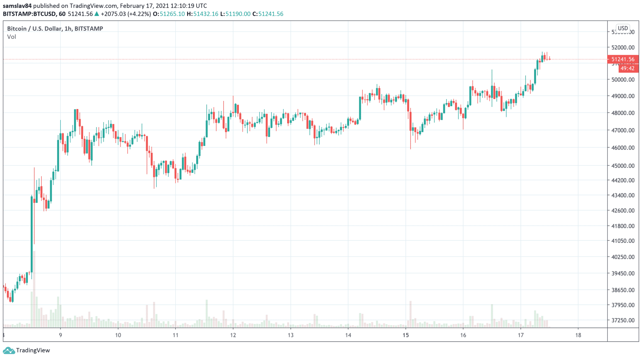 Mimochodom, myslíte si, že teraz ideme pomalšie? Ono to tak možno vyzerá, ale v skutočnosti je rýchlosť súčasného rastu naozaj pekelná. Ťažko sa tomu verí, ale Bitcoin bol pred týždňom o 13 000 $ lacnejší a ešte na začiatku februára sa dal kúpiť za 33 000 $!