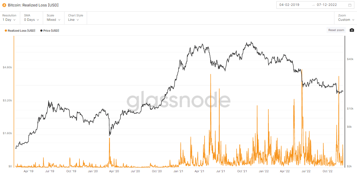 Ďalšia dôležitá metrika, ktorá potvrdzuje podobnosť medzi krachom Terry a FTX je objem realizovaných strát. Po krachu FTX boli realizované denné straty takmer na historickom maxime, ktoré bolo dosiahnuté po krachu Terry. Napriek tomu hodnota bola veľmi blízko a išlo o tretiu najväčšiu zaznamenanú dennú hodnotu za celú históriu.
