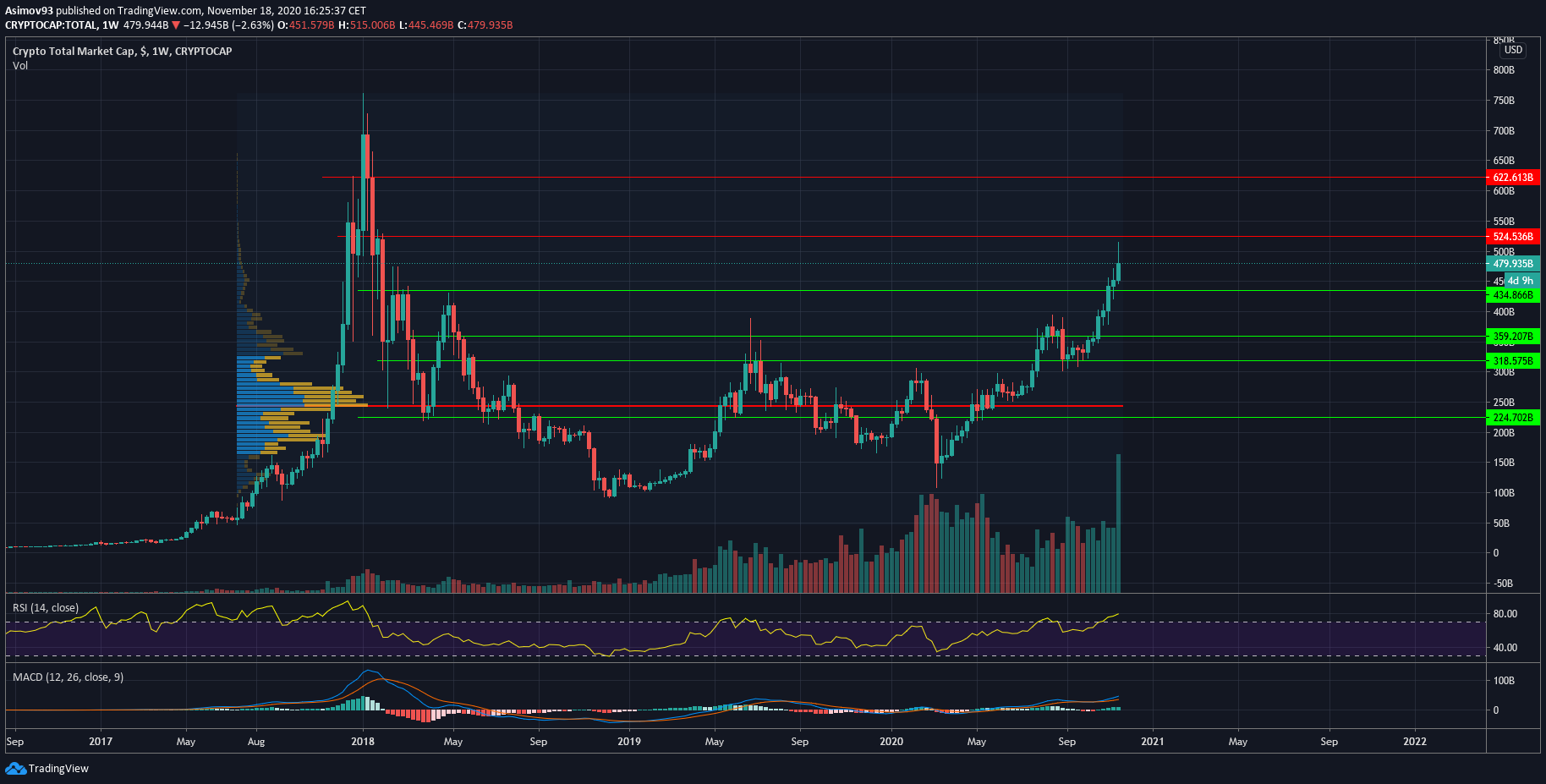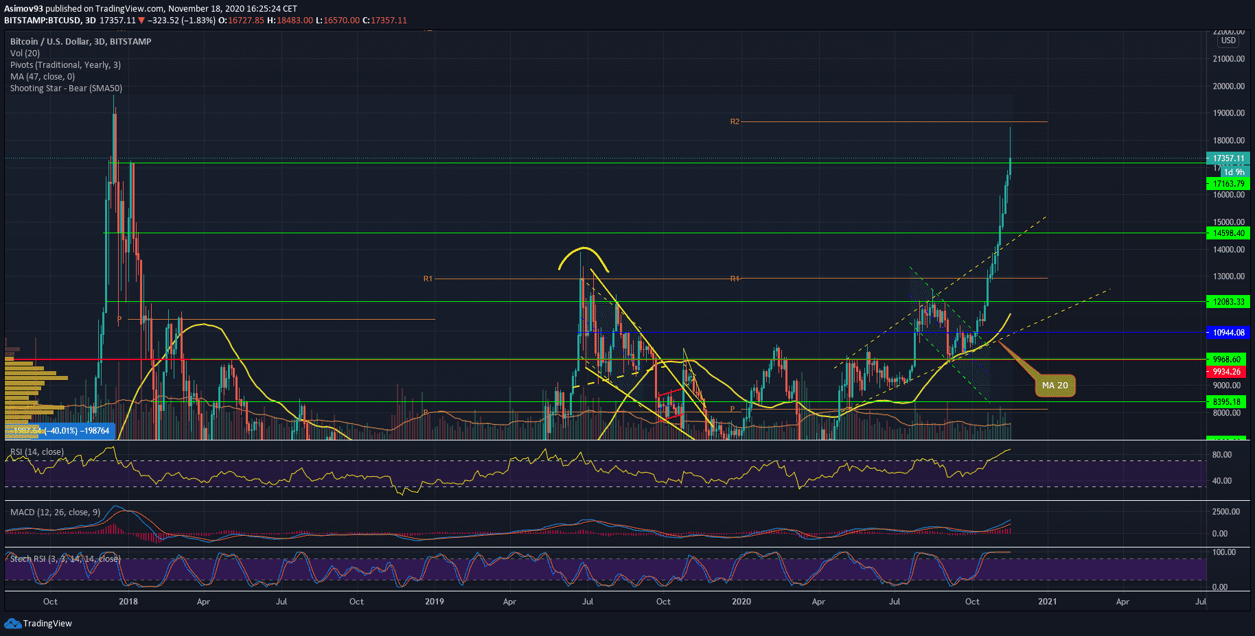 Kurz však prekonal ďalšiu rezistenciu na 17 000 USD, čím všetkým shortárom dal trh tvrdú ranu. Vzhľadom na to, ako sa trh správa, dospel som k záveru, že v súčasnosti má Bitcoin úplne pod kontrolou inteligentná entita. Pravdepodobne skupina inštitúcií, ktorá má akúsi stratégiu, ktorej sa drží.