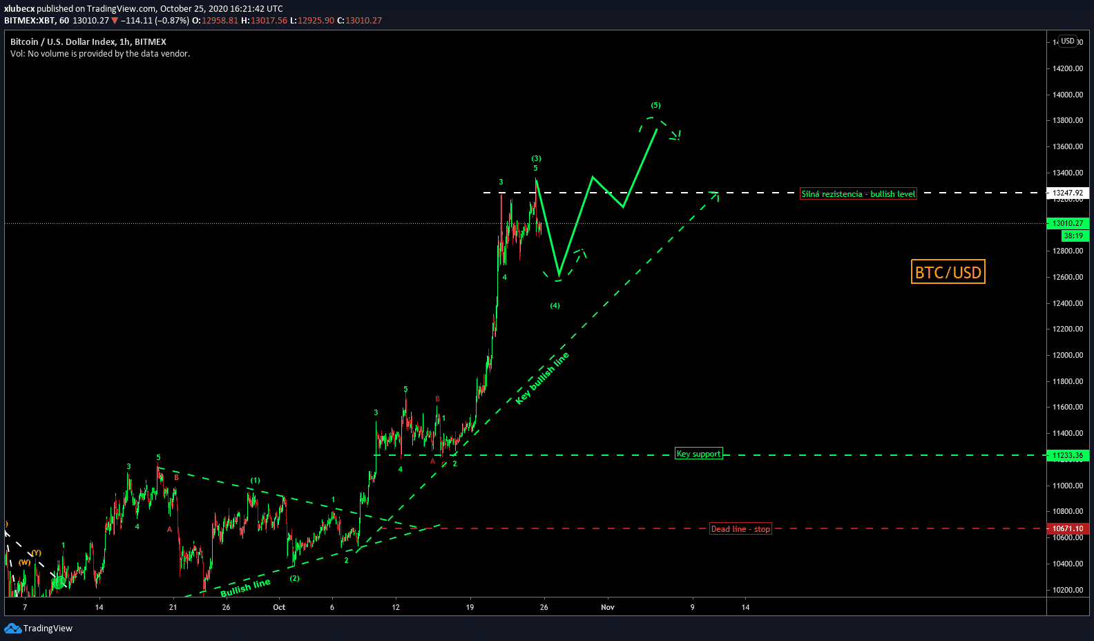 Bitcoin zatiaľ pokračuje v bullish trende a aj vďaka tomu nám posledné obchody krásne vyšli v zisku. Počkali sme si na korekciu a nakúpili. A presne rovnaký systém value tradingu používam aj teraz. S očakávaním, že príde korekcia idem vstupovať do trhu cez limit order na 12 600 USD. Celý set-up si rozoberieme na streame.
