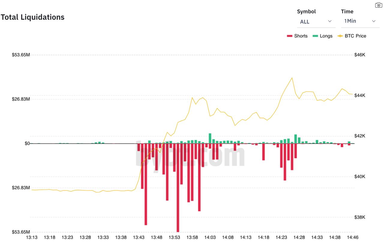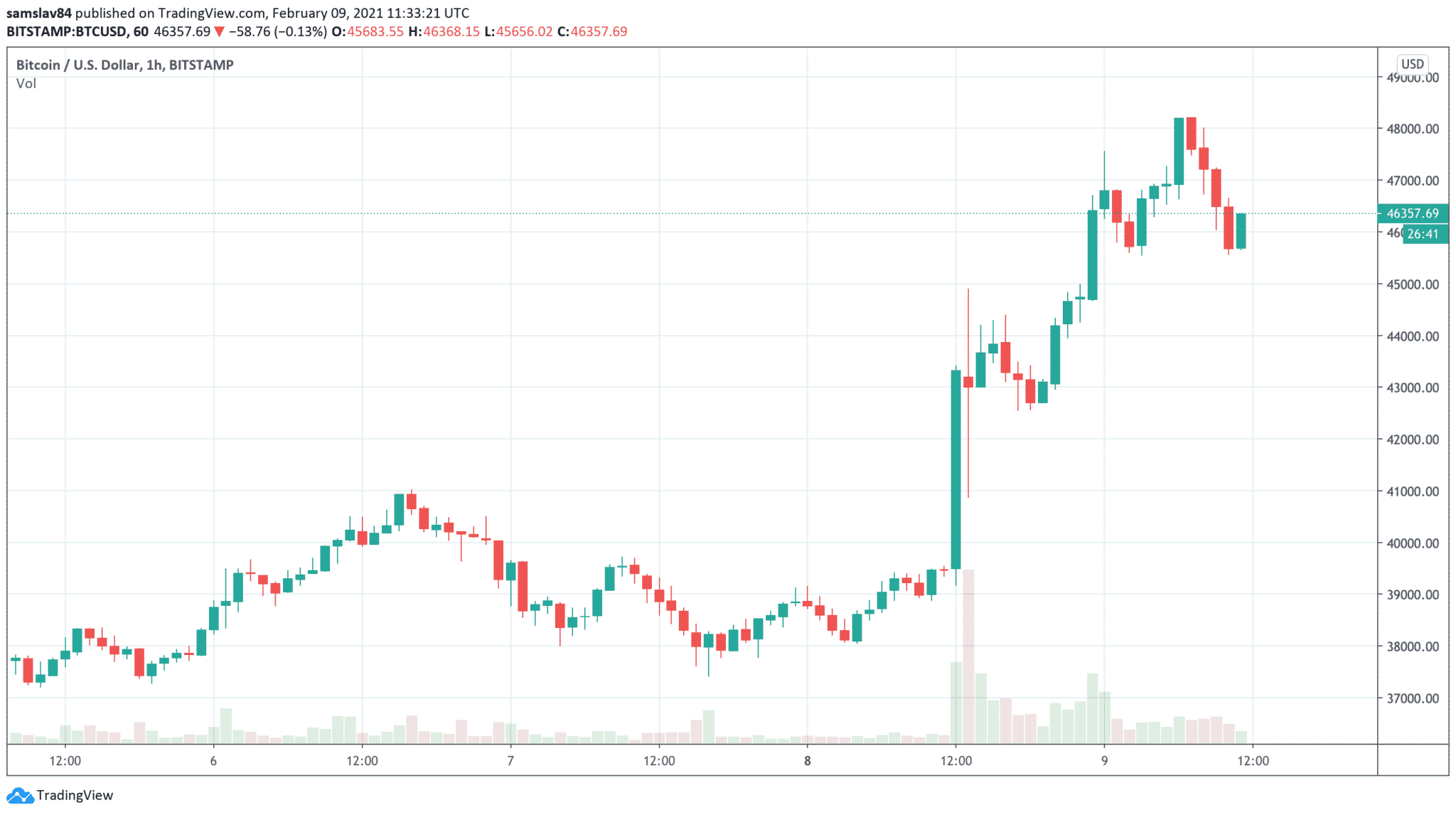 Včerajšie oznámenie Elona Muska však vôbec nepotešilo skeptikov, ktorí po nedávnom odraze z hladiny 41 000 $ očakávali hlbšiu korekciu. Desaťtisíce obchodníkov sa stále nepoučilo a pokúšajú sa zarábať na poklese ceny Bitcoinu. Títo špekulanti prišli o pol miliardy dolárov. A to je naozaj poriadny balík peňazí. Aj vďaka tomuto short squeezu Bitcoin dosiahol svoje súčasné ATH 48 216 $.
