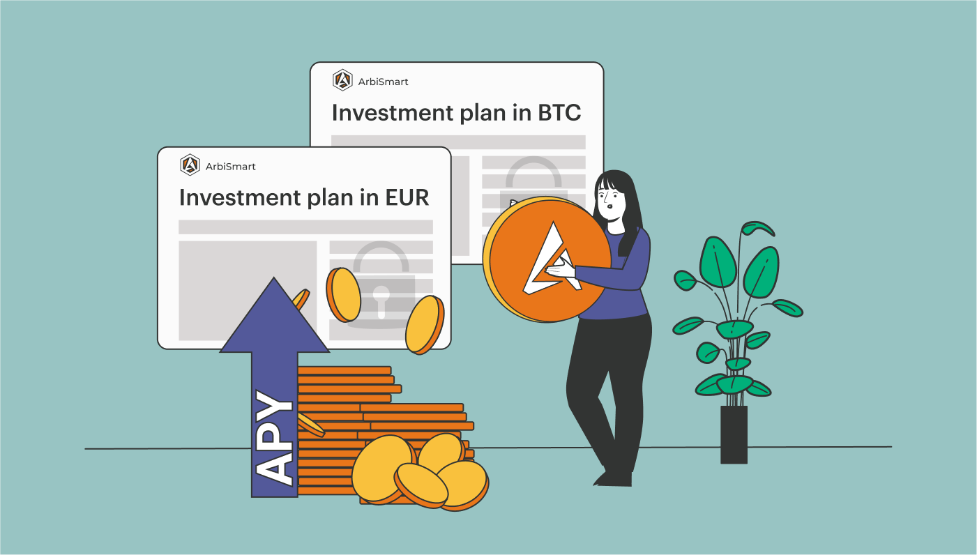 Stačí vložiť finančné prostriedky a vybrať si investičný plán arbitráže, kde sú finančné prostriedky zablokované a použité na obchodovanie krypto arbitráže vo vašom mene. Plány môžu byť v ktorejkoľvek z 30 mien podporovaných spoločnosťou ArbiSmart a budú na rôzne dlhé obdobie od 1 mesiaca do 5 rokov, pričom čím dlhšia zmluva, tým vyššie zisky.