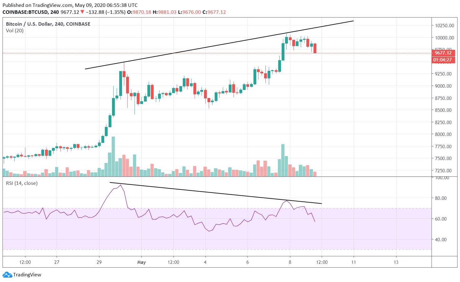 Trh s kryptomenami tretí deň stagnuje a Bitcoin už stihol dvakrát otestovať 10 000 $. Zdá sa však, že toto okrúhle číslo hneď len tak neprekoná. Stále viac analytikov na tradingview sa zhoduje, že bude nasledovať prepad na nižšie technické úrovne. Čaká nás teda (možno posledná) príležitosť kúpiť prepad, než Bitcoin natrvalo prekoná 10 000 $.
