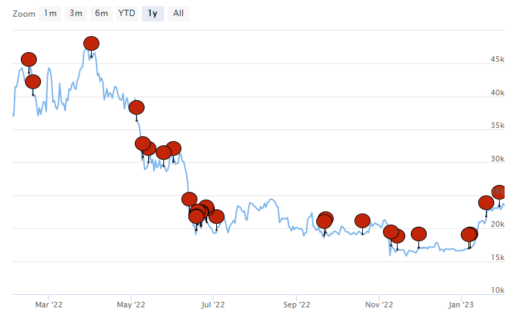 Bitcoin bol vyhlásený za mŕtva dokonca aj 8. novembra 2021, kedy sa nachádzal v oblasti historického maxima, podľa správy Spectator. Zatiaľ čo si mnohí myslia, že kryptomena je podvod a spadne na nulu, BTC sa v čase písania článku obchoduje na cenovej úrovni 23 430 dolárov. Podľa údajov CoinMarketCap dosahuje trhovú kapitalizáciu 452 miliárd dolárov a denný objem obchodov 29 miliárd dolárov. Dokonca má za sebou najziskovejší januárový rast desaťročia, o čom sme vás informovali v článku Bitcoin má za sebou najziskovejší január desaťročia. Čo nás čaká vo februári?