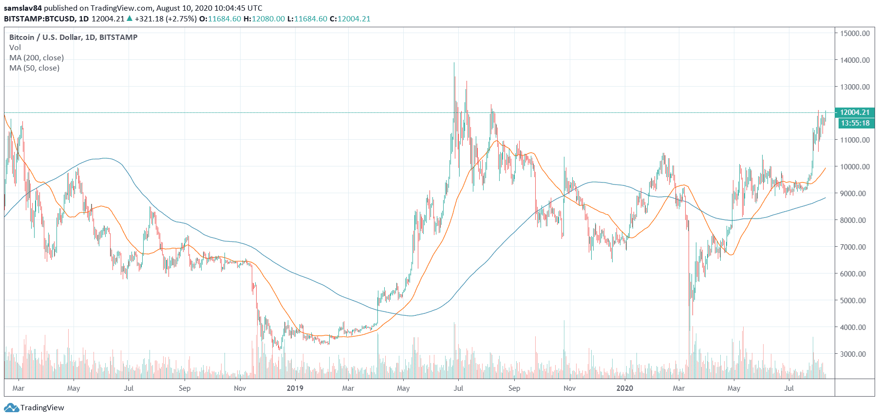 Bitcoin včera uzavrel weekly sviecu vo veľmi bullish pozícii. Na burze Bitstamp to bolo nad 11 700 $, čím Bitcoin prekonal silnú rezistenciu na 11 500 $. Niektorí traderi túto technickú úroveň v minulosti označili za kľúčovú rezistencii a teraz po jej prekonaní očakávajú ďalší rast.