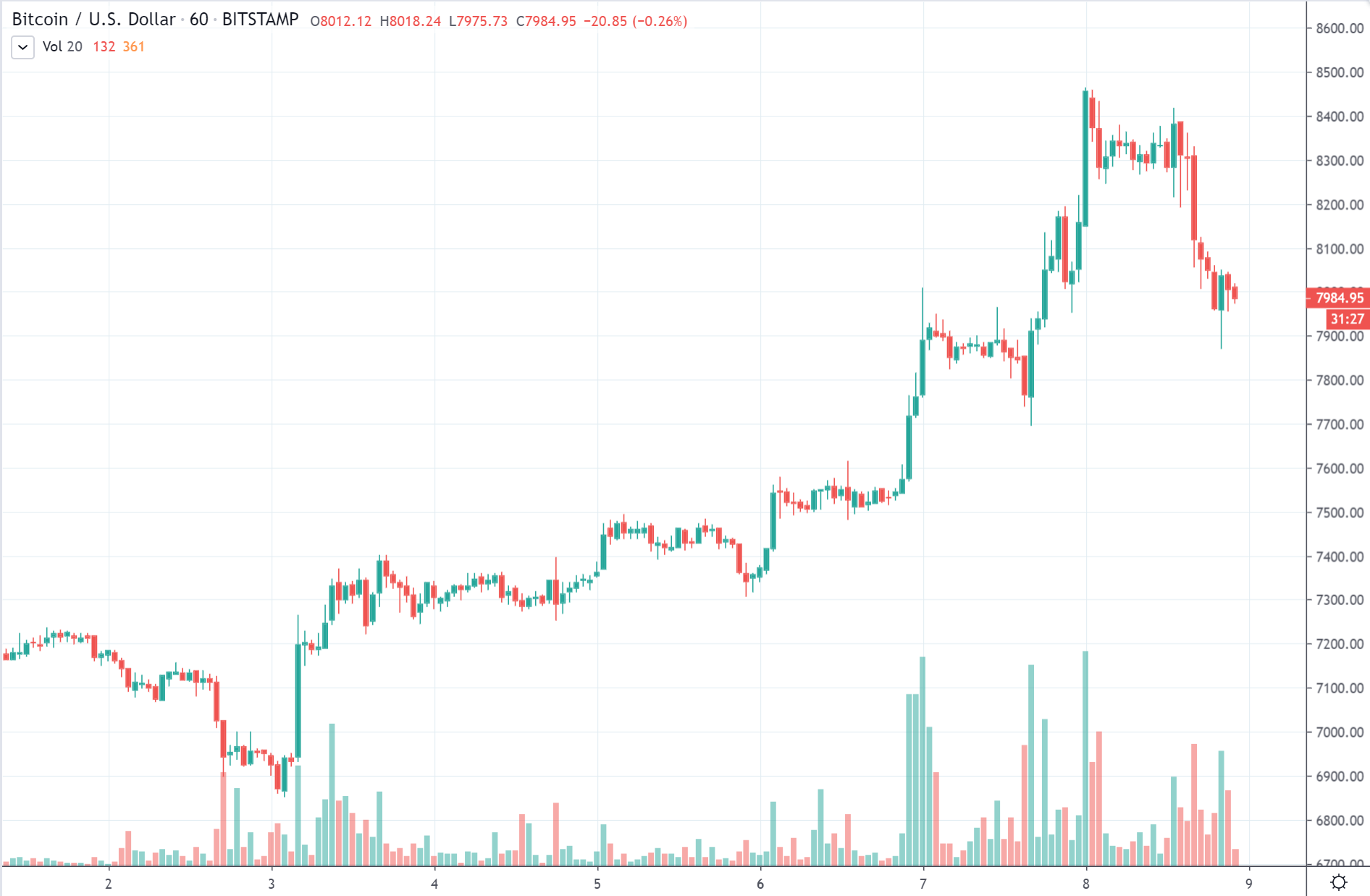 Ako si môžete všimnúť, aj v minulých dňoch sme po väčšom raste vošli do korekcie, no táto je podstatne väčšia. Zmazala všetky zisky z posledných dvoch dní a momentálne sa už zase nachádzame na okrúhlych ôsmich tisíckach.