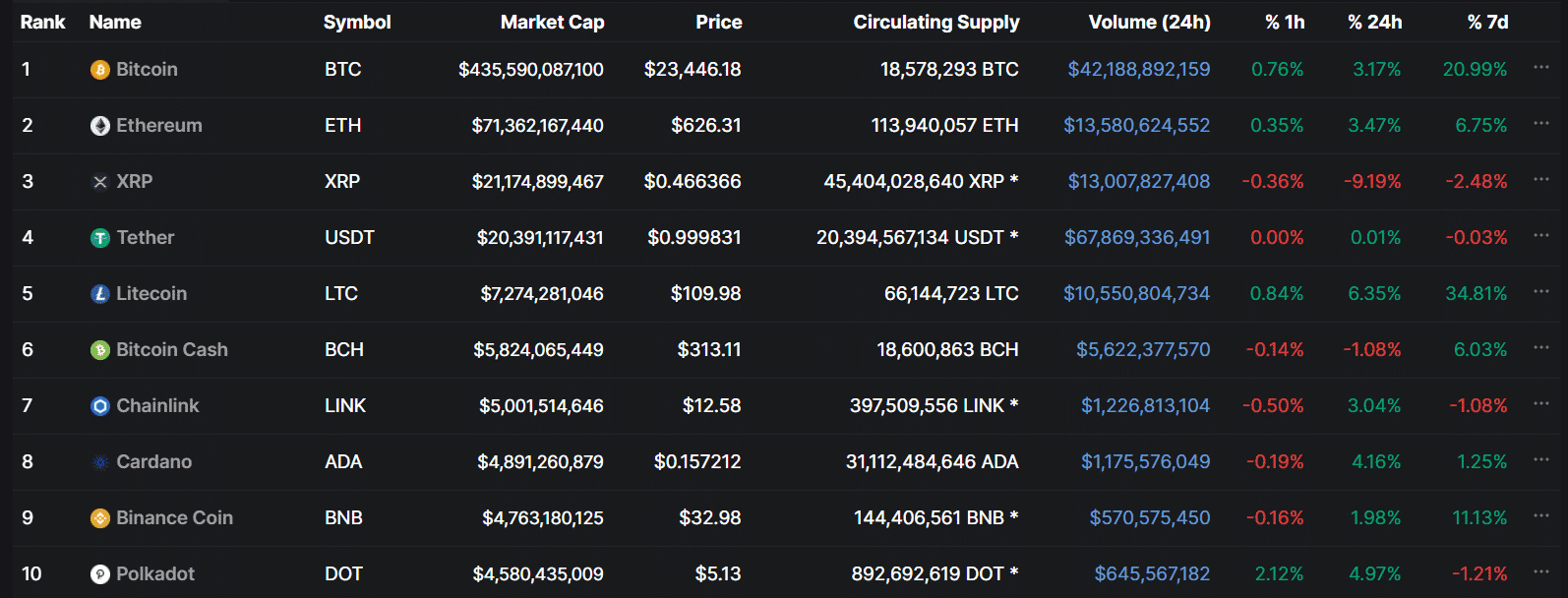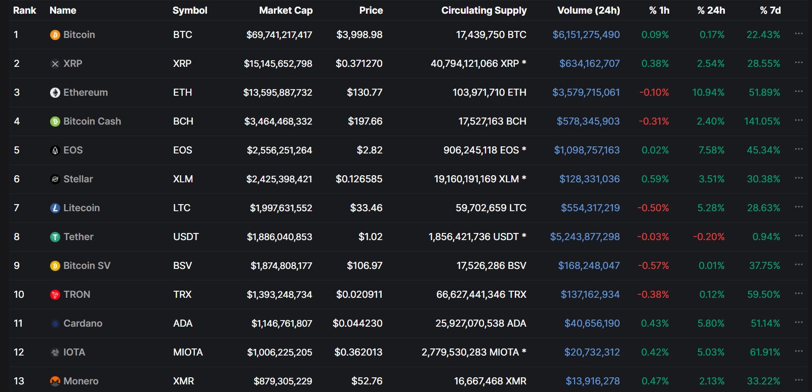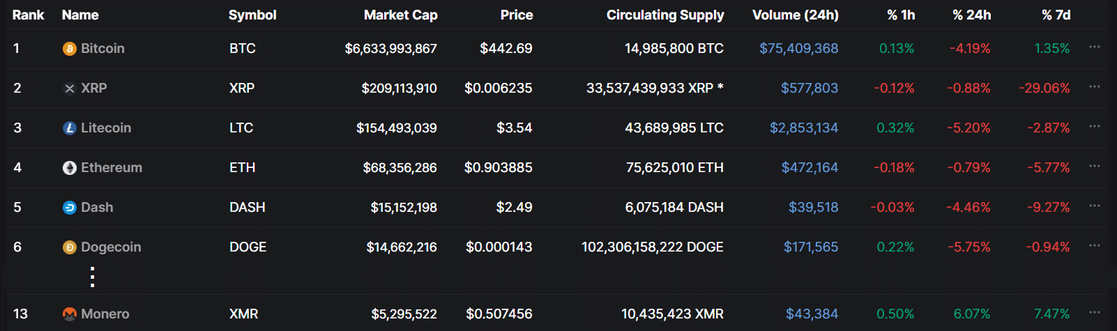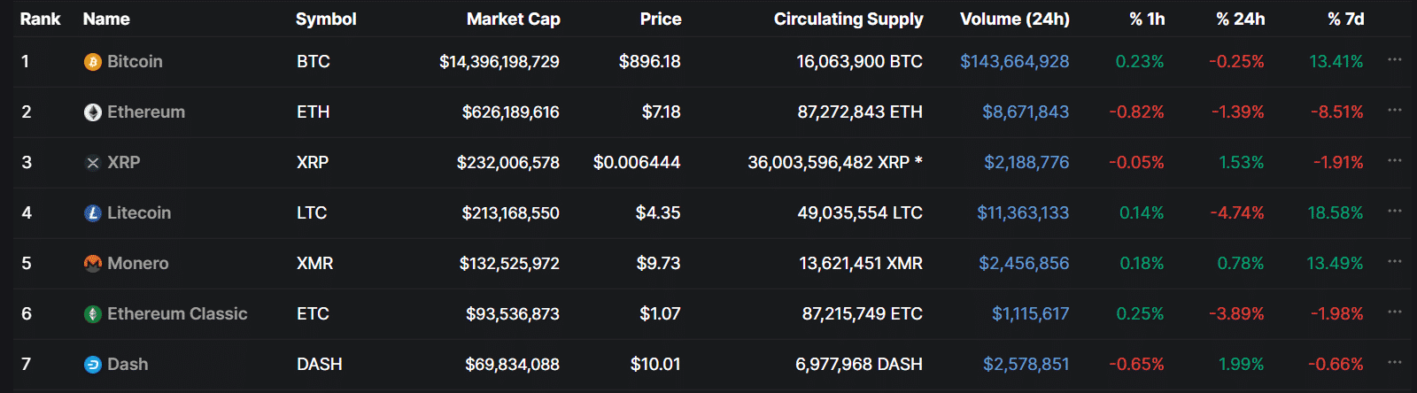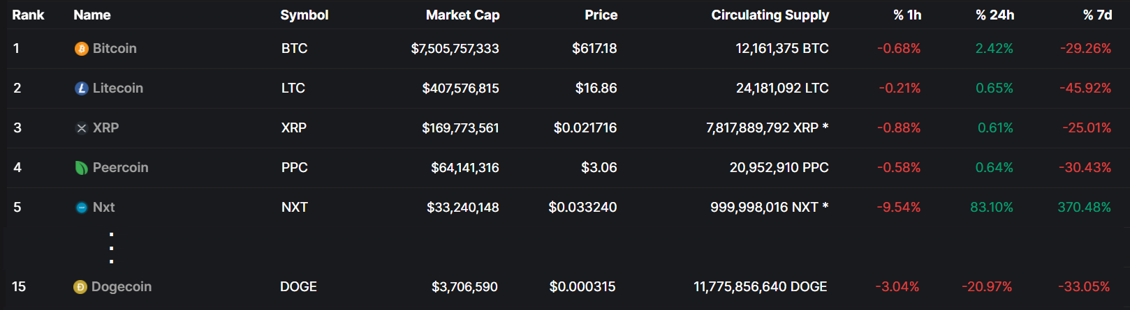 Na druhom mieste bolo digitálne striebro Litecoin, ktorý nasledovalo more shitcoinov. Väčšina z nich postupne upadla do zabudnutia, i keď na 15. mieste nájdete obľúbenú kryptomenu Elona Muska – Dogecoin.