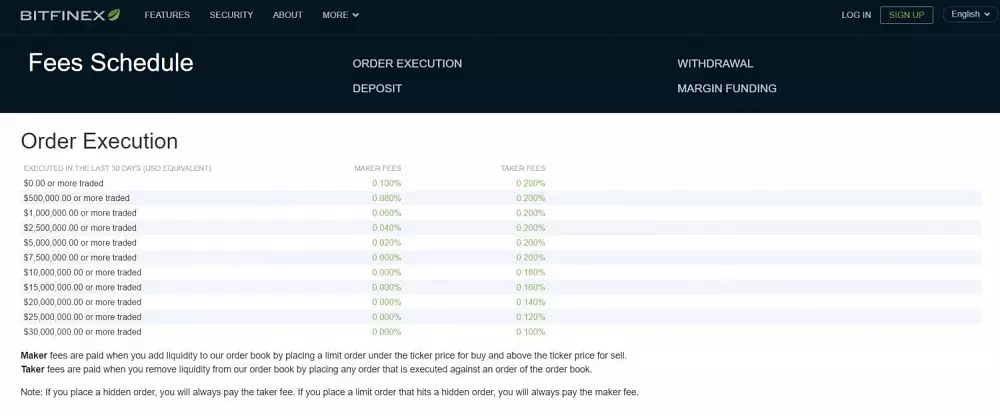 Ako väčšina kryptozmenární, tak aj Bitfinex má určité poplatky. Poplatky sa týkajú vkladu, výberu ale aj samotného obchodovania.
