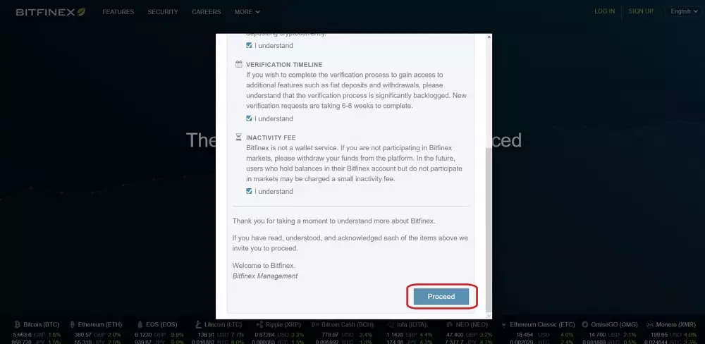 Ak vám Bitfinex oznámi, že verifikáciu nepotrebujete, tak jednoducho túto časť preskočte. Ak vás pustí ďalej, tak pokračujte v návode.