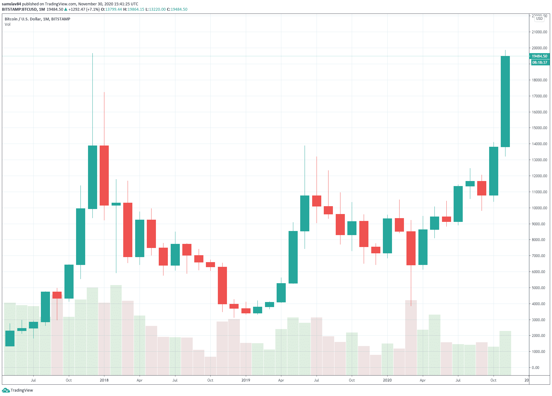 Prikladáme monthly graf z Bitstampu: