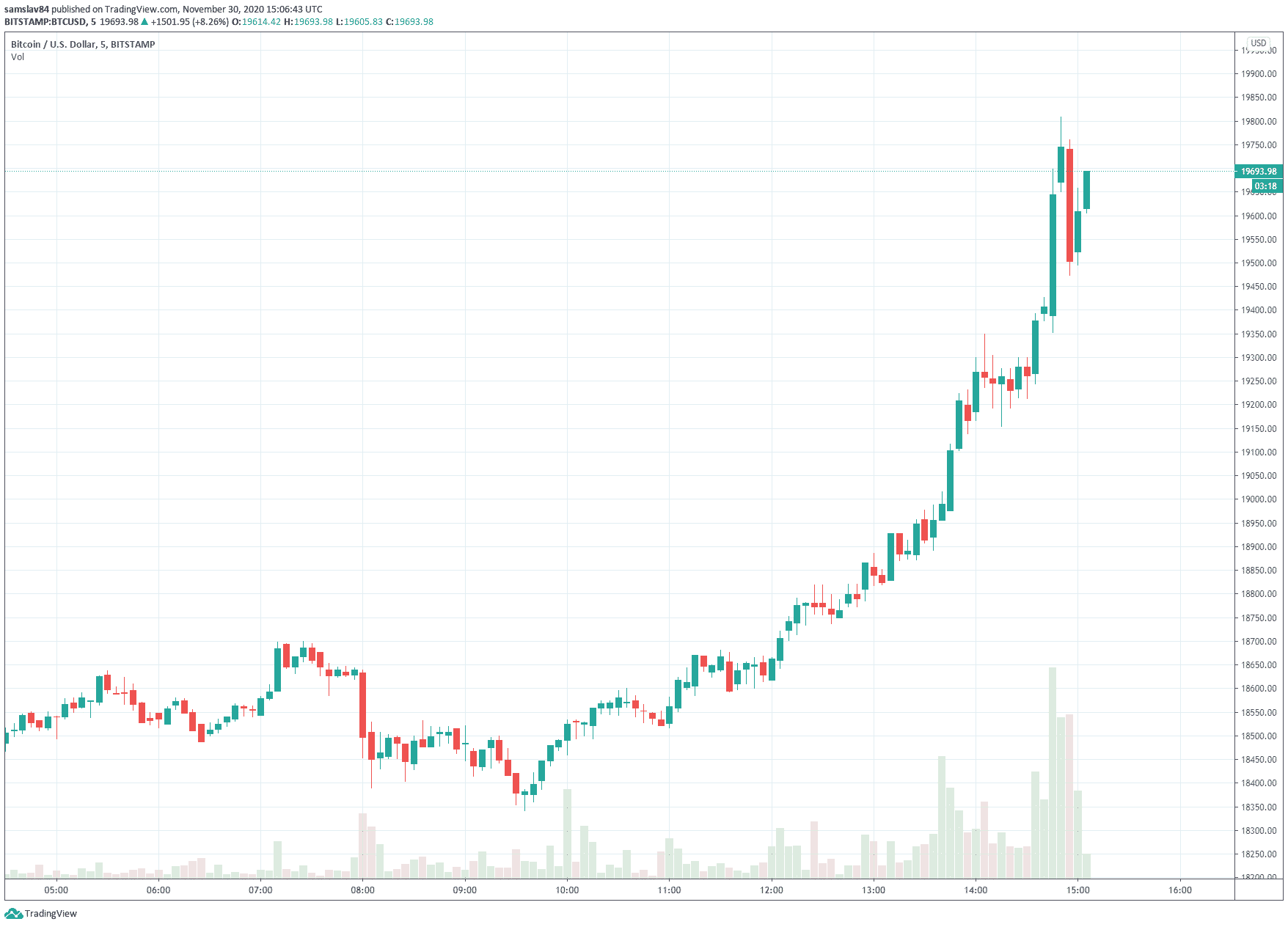 16:40 Bitcoin práve teraz predvádza poriadnu show. Ak to nesledujete, tak prichádzate o veľa! Momentálne sa obchoduje niekde medzi 19 000 a 20 000 $. Ťažko povedať, na každej burze má inú cenu. Na mnohých už dokonca aj prekonal svoje historické maximum (Bitstamp, Kraken, Binance).