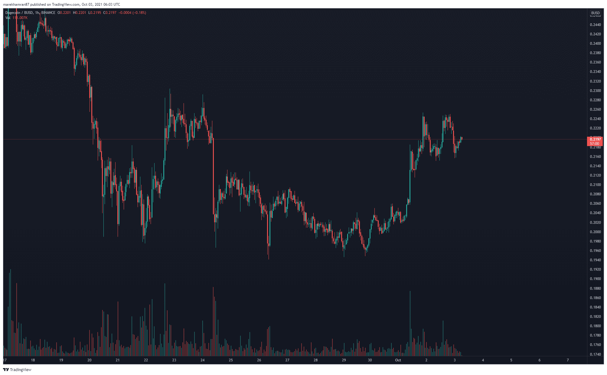 V čase písania tohto článku sa cena DOGE pohyboval na úrovni 0,2197 USD.