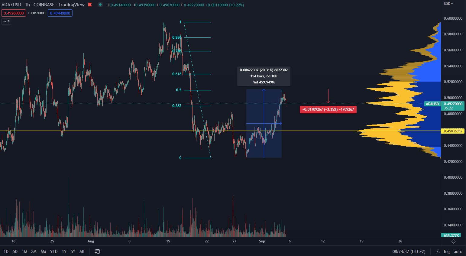 Zdá sa, že krátkodobý rastúci trend je odrazom zvýšeného dopytu investorov, čo súvisí aj s fundamentálnymi správami. Nedávno bol kryptomenový svet informovaný, že hard fork Vasil sa uskutoční 22. septembra. Od tohto updatu sa očakáva zlepšenie škálovateľnosti, zníženie ceny poplatkov a vylepšenie kódovacieho jazyka Plutus, ktorý slúži na inteligentné kontrakty.