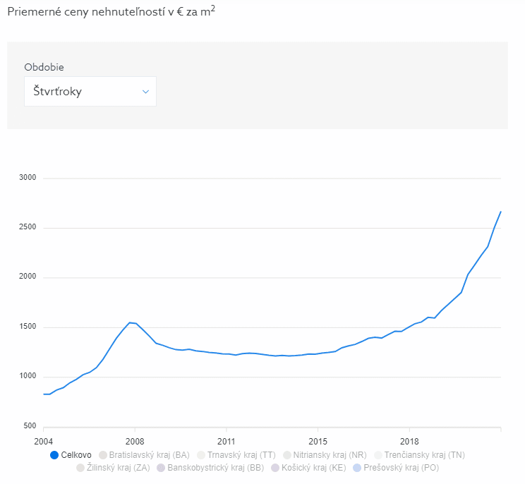 Ceny nehnuteľností na Slovensku. Zdroj: NBS