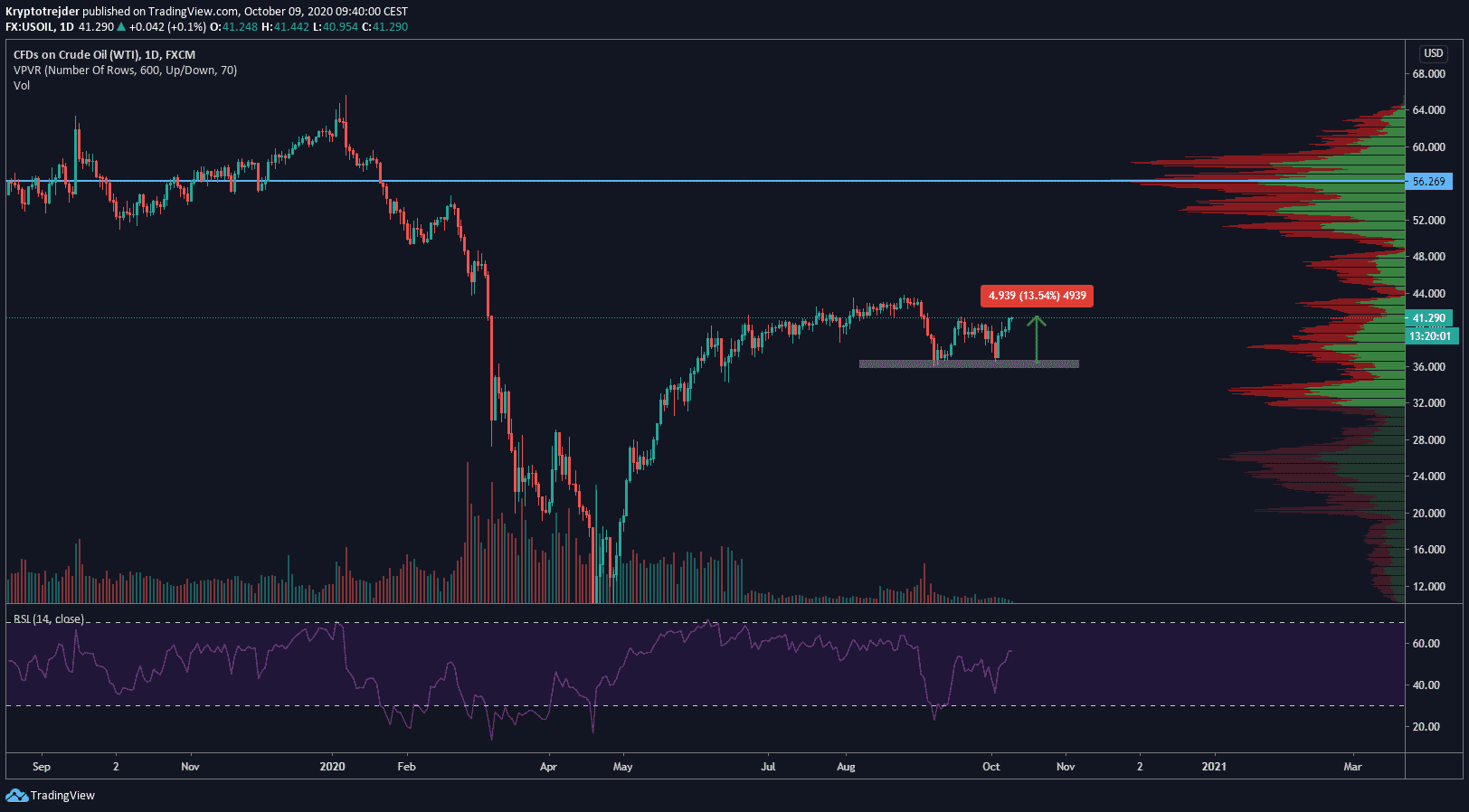 Cena WTI sa obchodovala na začiatku týždňa na hodnote 37 dolárov za barel. Momentálna cena je na úrovni 41,29 dolárov za barel. Ide tak o nárast za posledných 5 obchodných dní až o 13,5%.