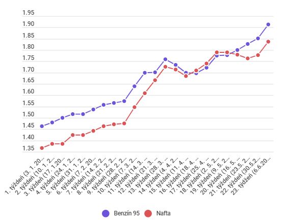 Aktuálny vývoj cien benzínu a nafty podľa štatistického úradu