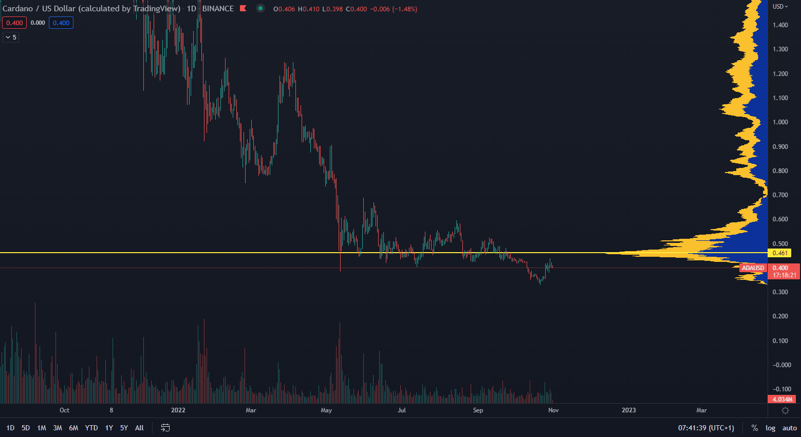 Cardano je taktiež v rastúcom trende, pričom za posledných 10 dní zaznamenalo zhodnotenie 21 %. Práve ADA je najviac podhodnotenou vysoko kapitalizovanou mincou na trhu. Dosahuje veľmi nízku úroveň trhovej hodnoty oproti jej reálnej hodnote, čo znamená, že je vo fáze prehriateho klesajúceho trendu z dlhodobého hľadiska.