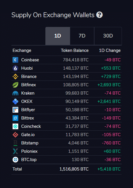 Tento web v reálnom čase monitoruje aktuálne množstvo kryptomien na najväčších burzách a taktiež zobrazuje v grafe ako sa toto množstvo v poslednej dobe menilo.