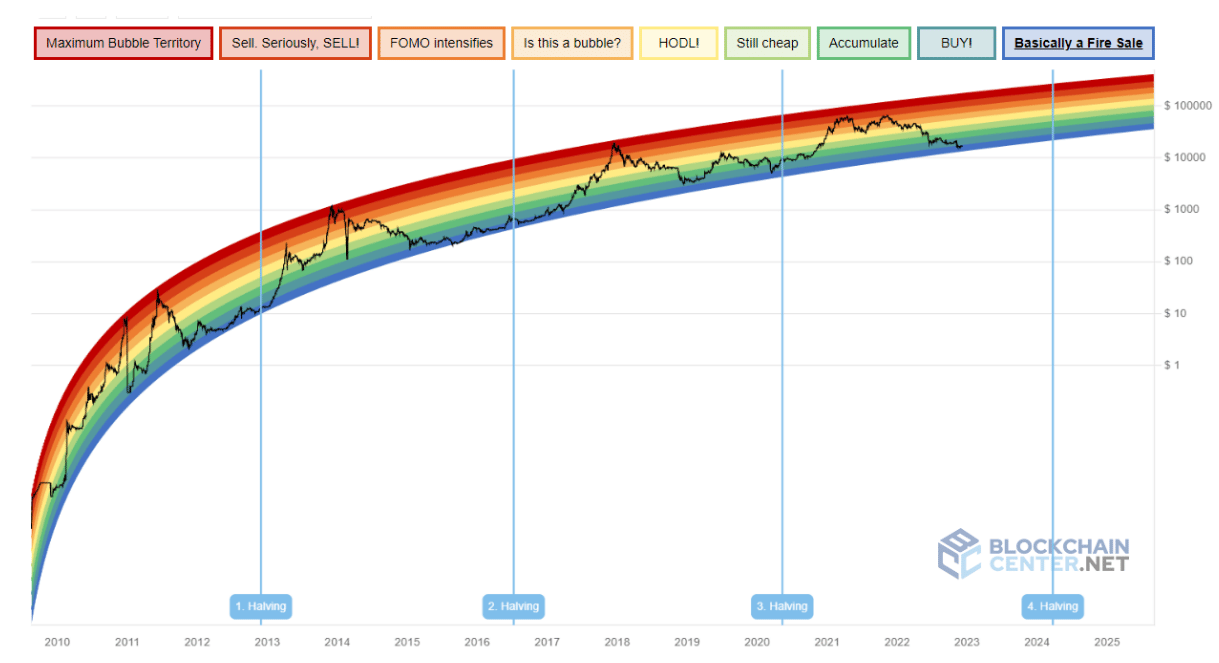 Keďže sme už pochopili závislosti medzi cenou Bitcoinu a halvingovým cyklom, je na čase zodpovedať si otázku, ako tieto cykly obchodovať. Všeobecne sa odporúča nakupovať predovšetkým po stabilizácii ceny po dlhodobej korekcii. Na počet dní, ktoré chýbajú do ďalšieho halvingu, sa nemožno spoliehať, a preto je potrebné časový faktor obohatiť o samotné cenové pohyby. Mnohí investori používajú aj dúhový graf, ktorý určuje ideálne nákupne zóny v každom cykle.