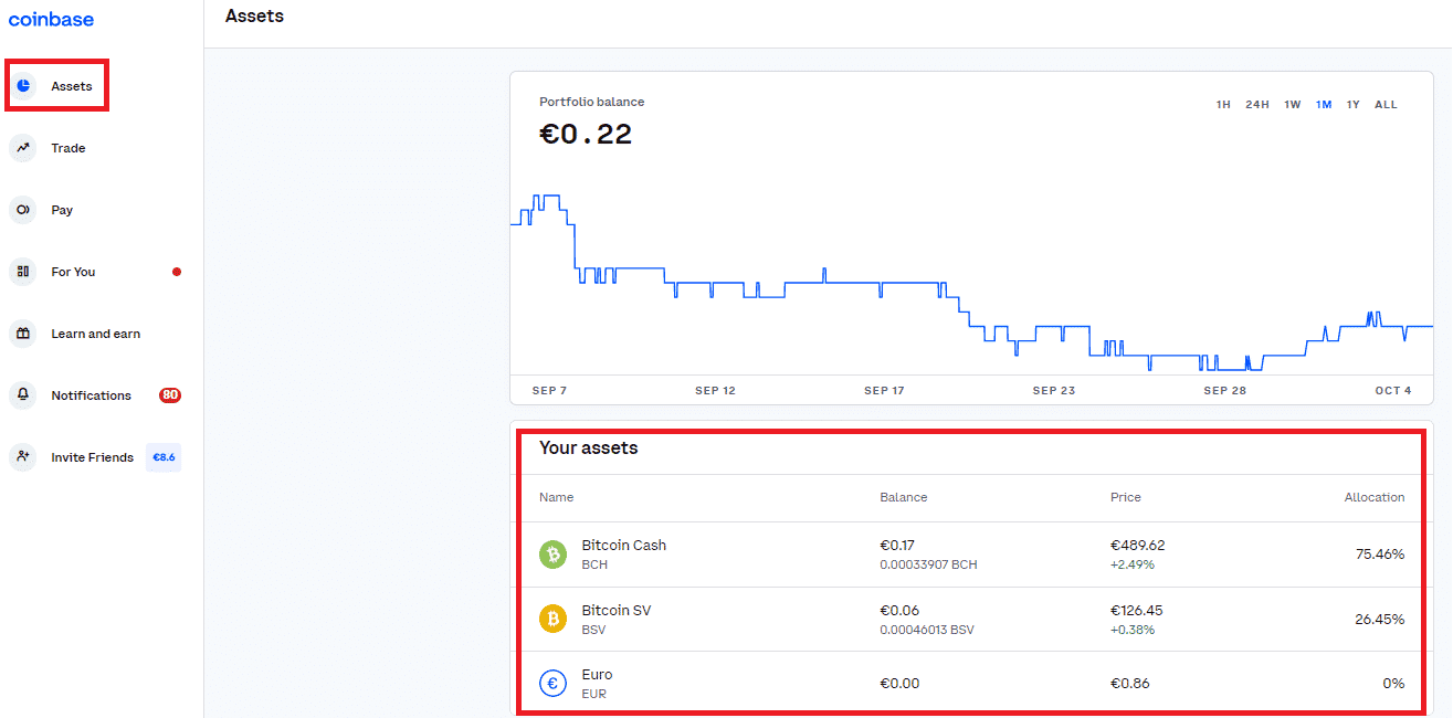 - Your assets – toto je zoznam peňaženiek, na ktorých máte prostriedky a sledujete ich stav.