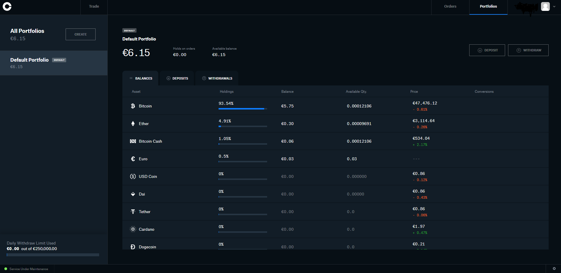 Užívatelia taktiež nemajú žiadne problémy s vyberaním alebo vkladaním prostriedkov na účet burzy. Navyše, ako bolo spomenuté, v prípade problémov Coinbase neváha hneď refundovať svojich klientov. História burzy Coinbase je taktiež bohatá a burza funguje prakticky skoro celú existenciu kryptomien. Preto nie je žiadnym prekvapením, že na burze Coinbase si vytvorilo účet viac ako 50 % fanúšikov kryptomien po celom svete.