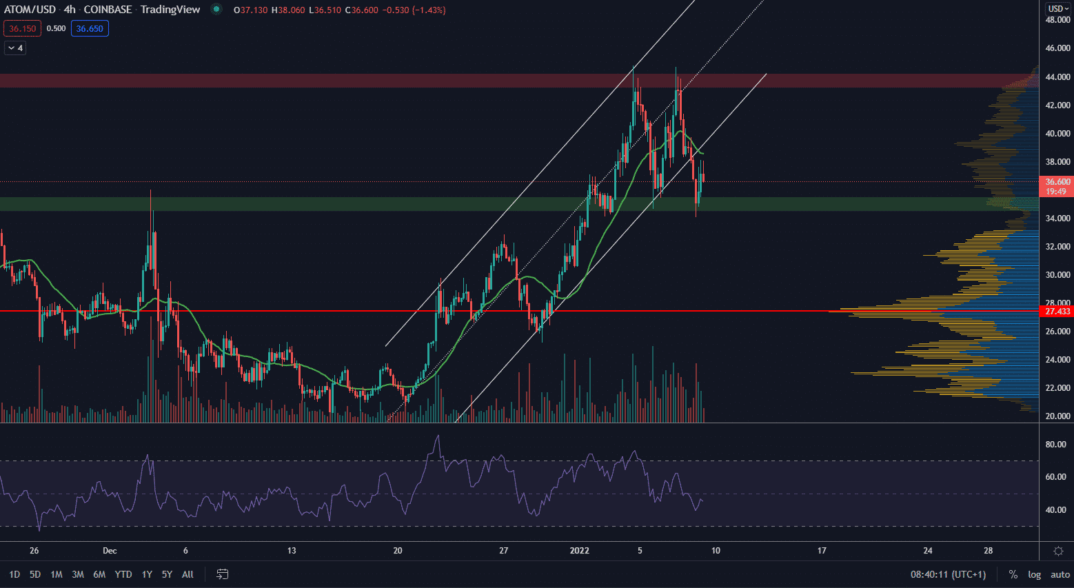 ATOM ako jedna z mála kryptomien s vysokou kapitalizáciou posledné obdobie zaznamenal rýchly rast. Súčasný trend je skôr sideway, pretože cena vytvorila dvojitý vrchol na rezistencii 44,00 $ a dvojité dno na supporte 34,50 $. V tejto situácii je teda dôležité udržať support, aby sa trend neotočil na korekciu.