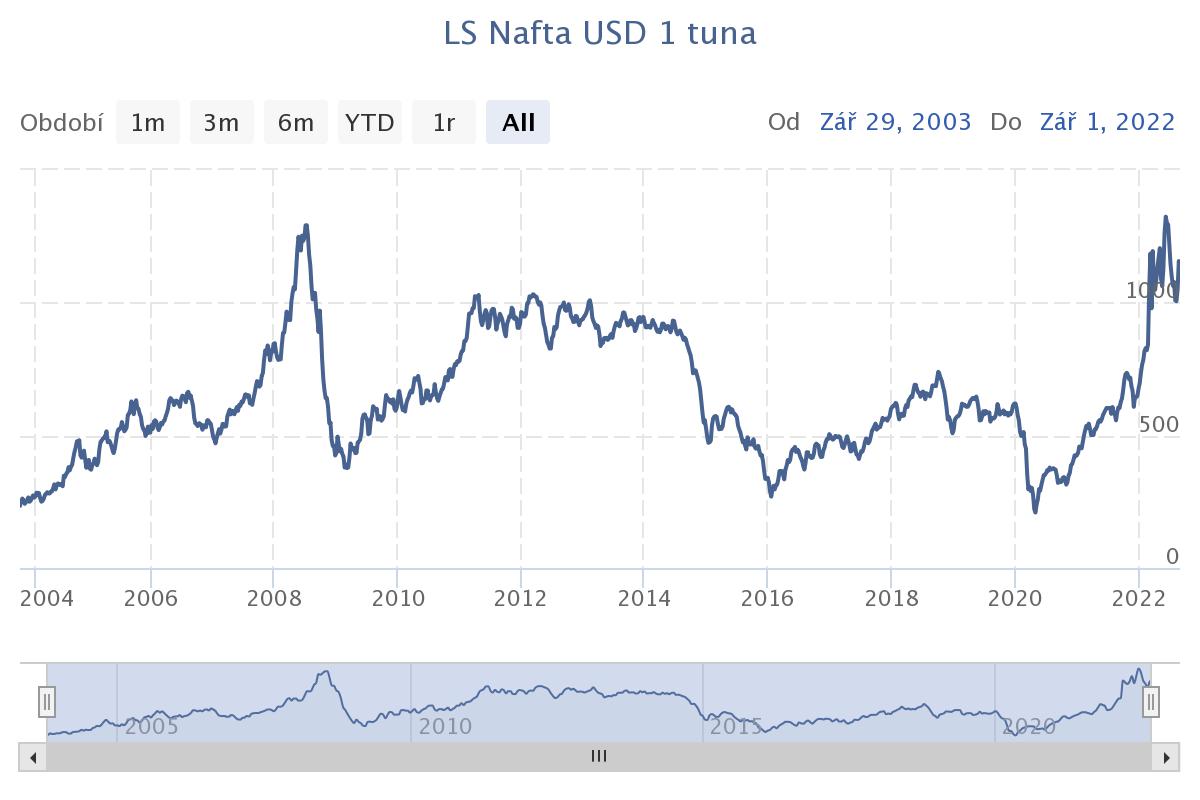 Graf: rast ceny nafty na trhoch. Zdroj: kurzy.cz