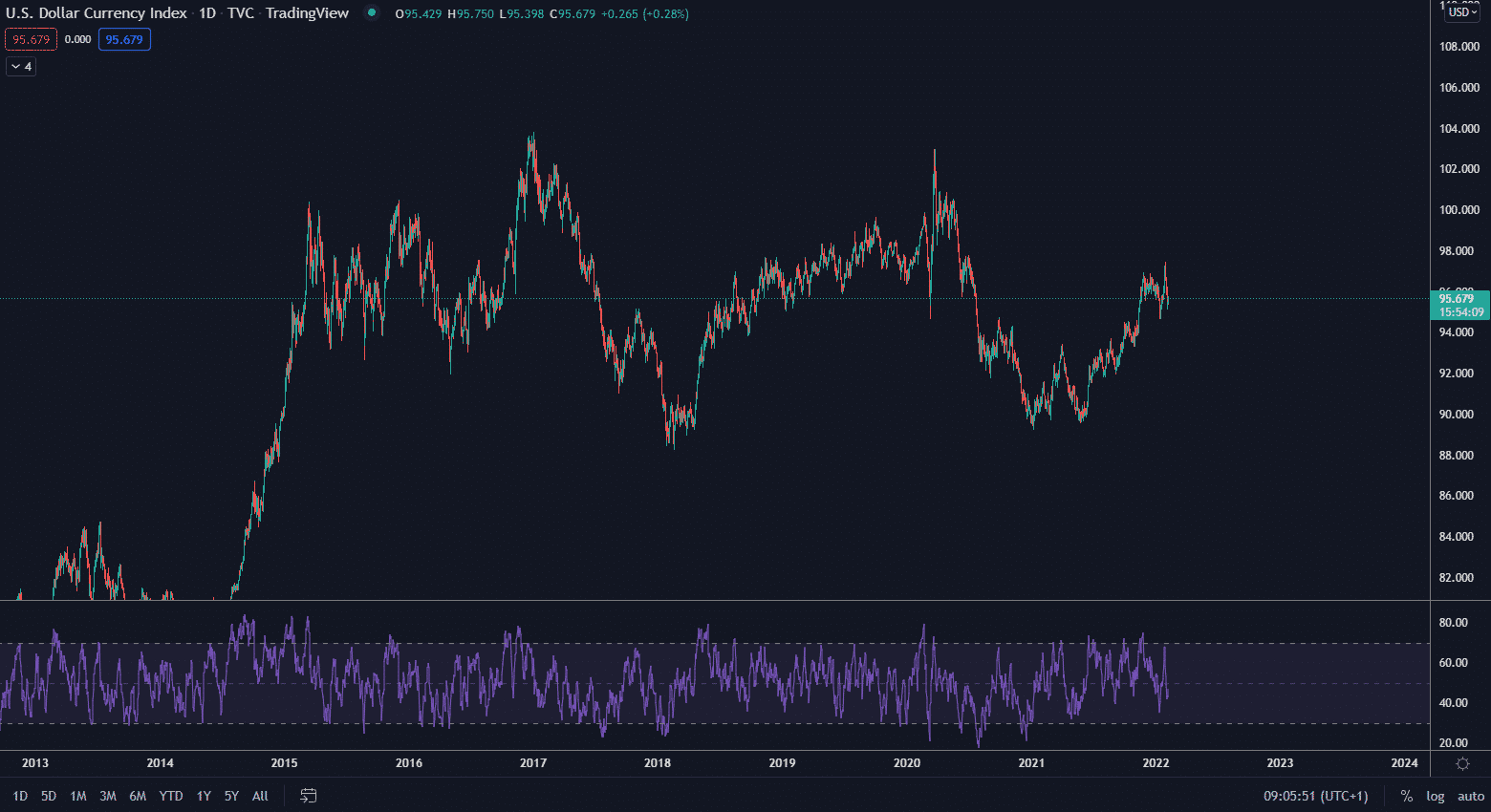 DXY denný graf. Zdroj: TradingView
