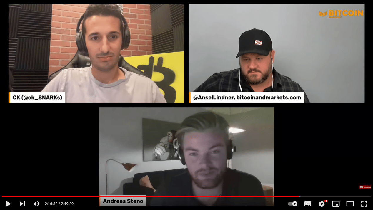 Andreas Steno na rozhovore. Zdroj: Youtube / Bitcoin magazine