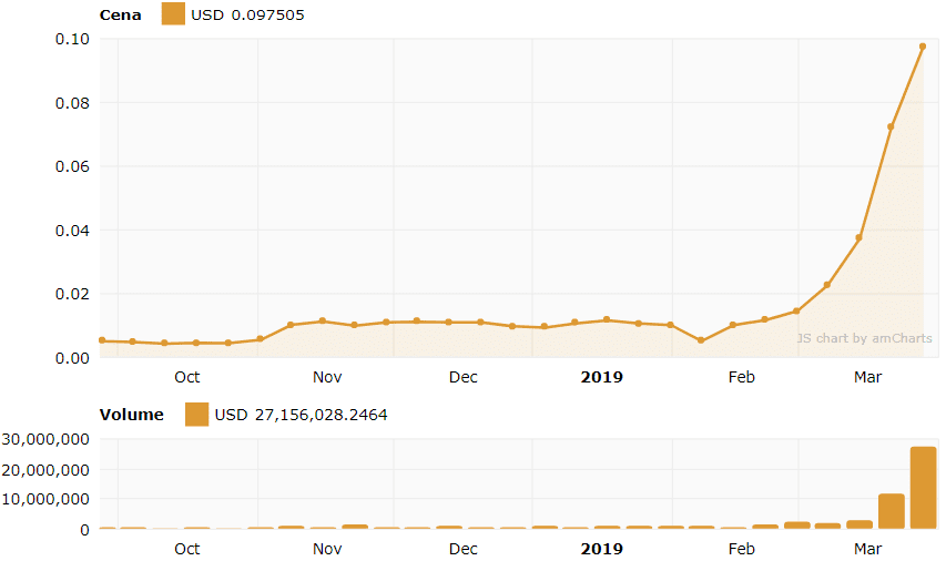 Podľa stránky KMcap.eu Maximine Coin za posledných 24 hodín zaznamenal rast o ďalších 30 %. Takto to pokračuje už niekoľko dní. Kryptomena svoje rallye začala prvého februára na hodnote cca 0,04 $. V priebehu niekoľkých dní sa masívne zvýšila obchodná aktivita na burze Coinbene, čo MXM začalo ťahať hore. Dnes už sa obchoduje za cca 0,1 $.