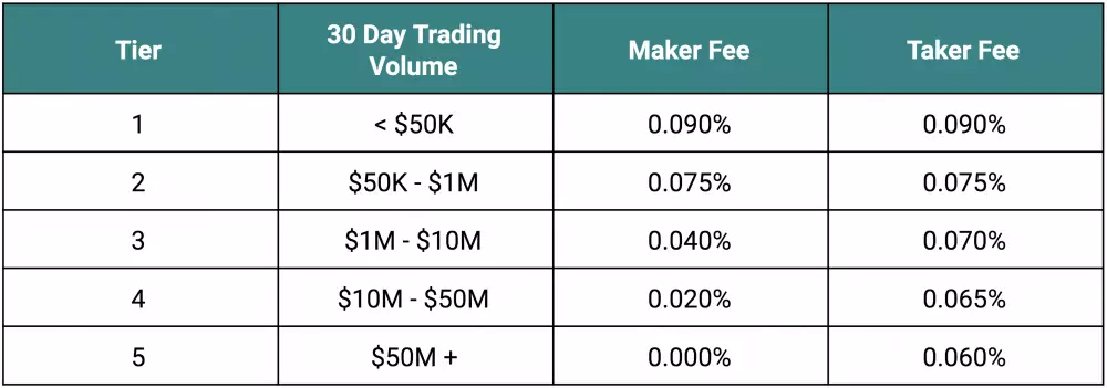 Táto krypto zmenáreň sa tiež rozhodla nanovo prerobiť svoj systém poplatkov za obchodovanie. Chcú docieliť to, aby boli široko ďaleko tou najvhodnejšou krypto burzou, čo sa týka poplatkov – preto tieto poplatky znižujú na minimum. Od 8. januára 2020 začne platiť nový poplatkový systém, ktorý nájdete v tabuľke nižšie.
