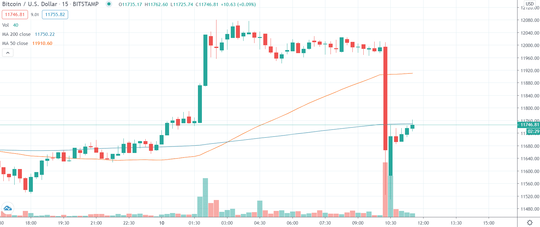 Pred necelou hodinou sme na trhu s kryptomenami zaznamenali náhly dump o takmer 500 $. Bitcoin sa dnes pekne usadil nad 12 000 $ a zdalo sa, že by mohol túto hladinu udržať, no nakoniec sa mu to nepodarilo. Dnes krátko po dvanástej prišiel dump na 11 500 $ a odvtedy sa cena vrátila o 200 $ vyššie. Bitcoin počas dumpu stratil 4% svojej hodnoty.