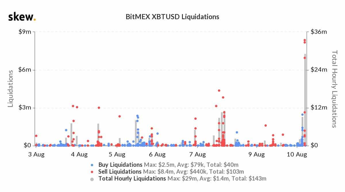 Dump tiež spustiť vlnu likvidácií na burze BitMEX. Celkovo sa vyparili pozície za takmer 36 miliónov dolárov. Ide o najväčšie kolo likvidácií za posledný týždeň.