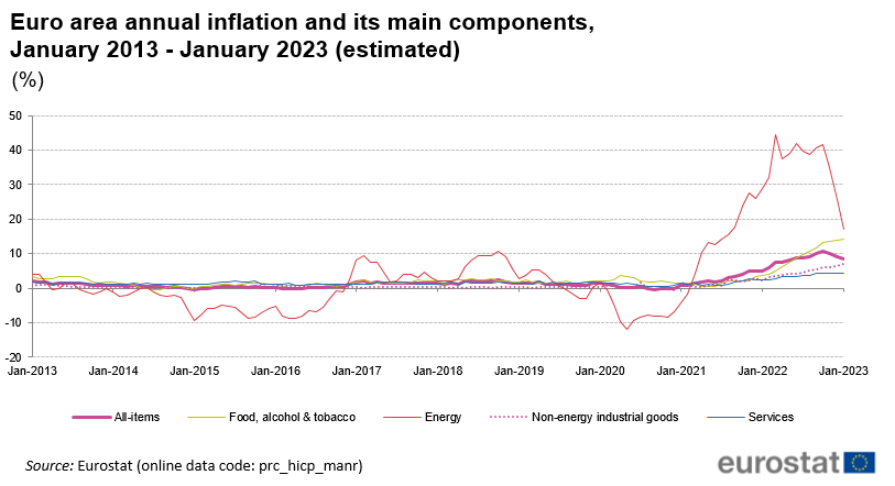 Zatiaľ, čo v lete bola miera inflácie 9,1 %, tak v decembri to bolo iba 6,5 %. Zásadný rozdiel medzi Európou a Amerikou je v reakcií centrálnych bánk na nepriaznivú makroekonomickú situáciu. ECB reagovala na infláciu výrazne neskoro a zatiaľ čo aktuálne miera úrokových sadzieb v USA je 4,75 %, tak v eurozóne je to takmer o polovicu menej – 2,5 %.