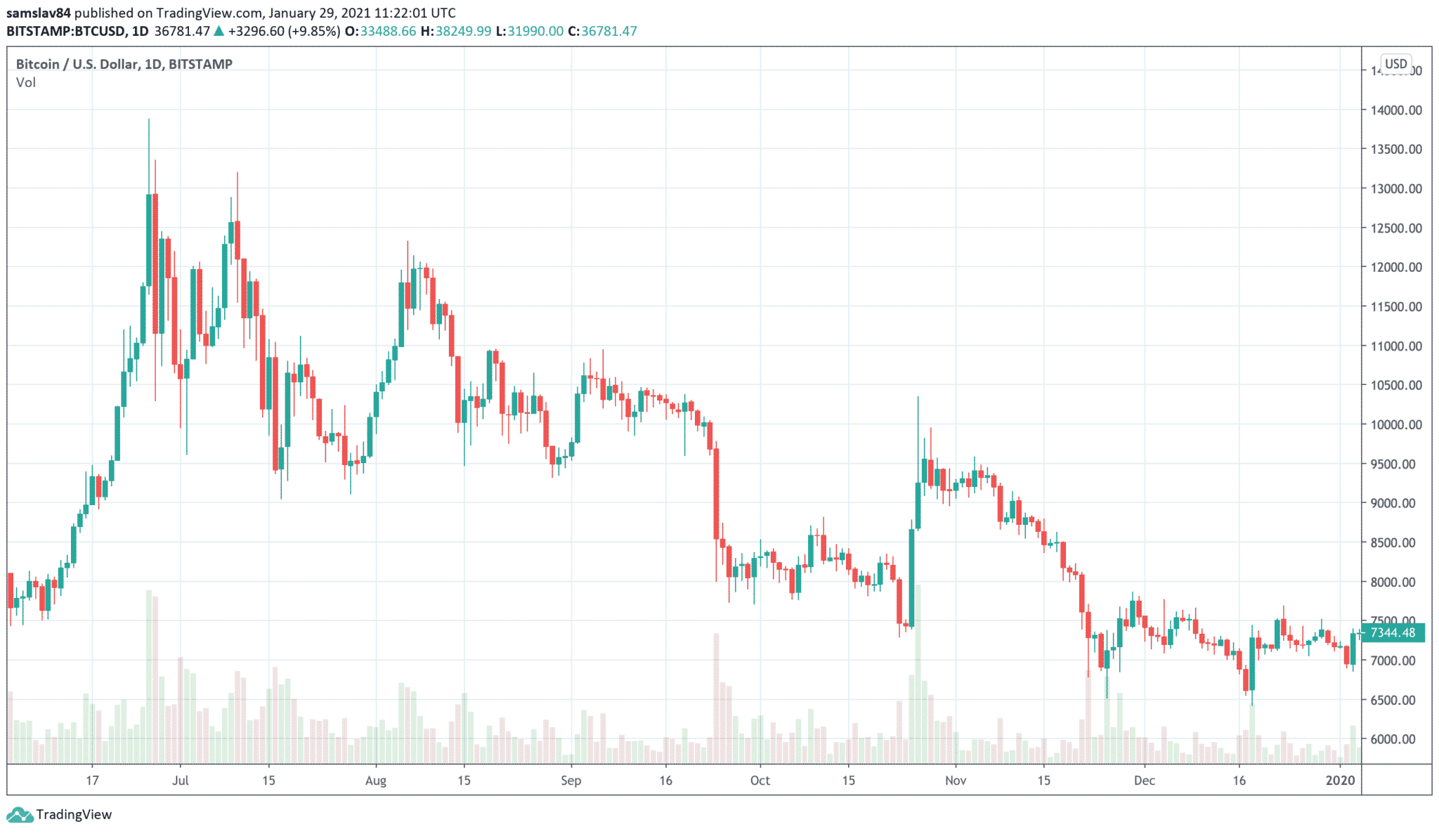 Bitcoin vytvoril vyššie high a zol cenu 38 300 $, kde sa momentálne nachádza nepríjemná rezistencia. Aktuálne sa pohybujeme o 1700 $ nižšie. Pekné… ale bude to stačiť na otočku a rozpútanie ďalšieho bullrunu?