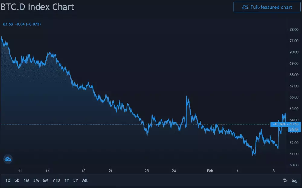 Dominancia BTC posledný mesiac, Zdroj: Tradingview