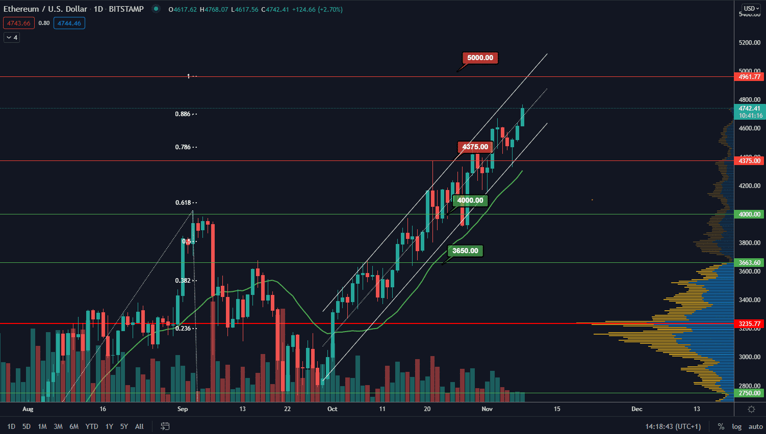 Ethereum pokračuje aj naďalej v medveďom flagu smerom nahor s cieľom 5 000 $. Ide však iba o krátkodobý target a predpovede v niektorých prípadoch hovoria až o cene 14 000 $.