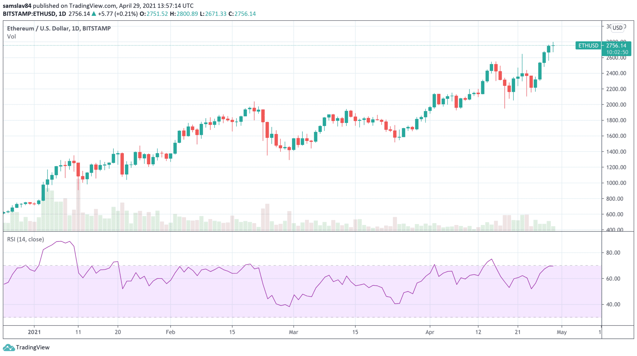 Ethereum prežíva v posledných týždňoch búrlivé obdobie. Hodnota tejto kryptomeny sa pohybuje v rozmedzí 2000 až 2650 dolárov a Ethereum dnes dokonca dosiahlo nové historické maximum na cene 2800 dolárov. A to napriek 20% prepadu zo 17. apríla. Tento jav nebol spôsobený ničím iným, ako likvidáciou pozícií v hodnote 1 miliardy dolárov.