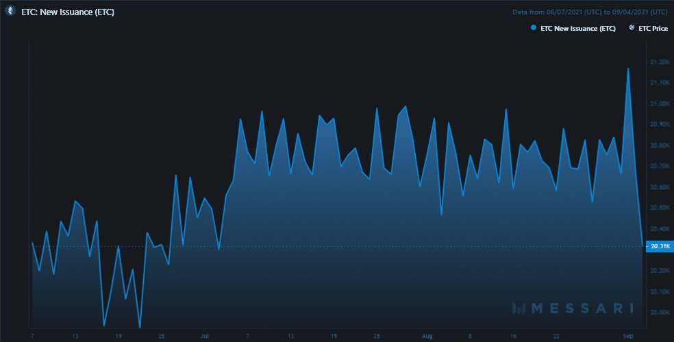 S najväčšou pravdepodobnosťou bol pokles spôsobený minermi alebo poolmi, ktoré používali neoprávnenú verziu Coregeth. Kým sa však podarilo vyriešiť problém, škody už boli značné. Tento stav dokázal negatívne narušiť aj vydávanie ETC. Emisie začali klesať na najnižšiu úroveň až na hodnotu 20 300 ETC.