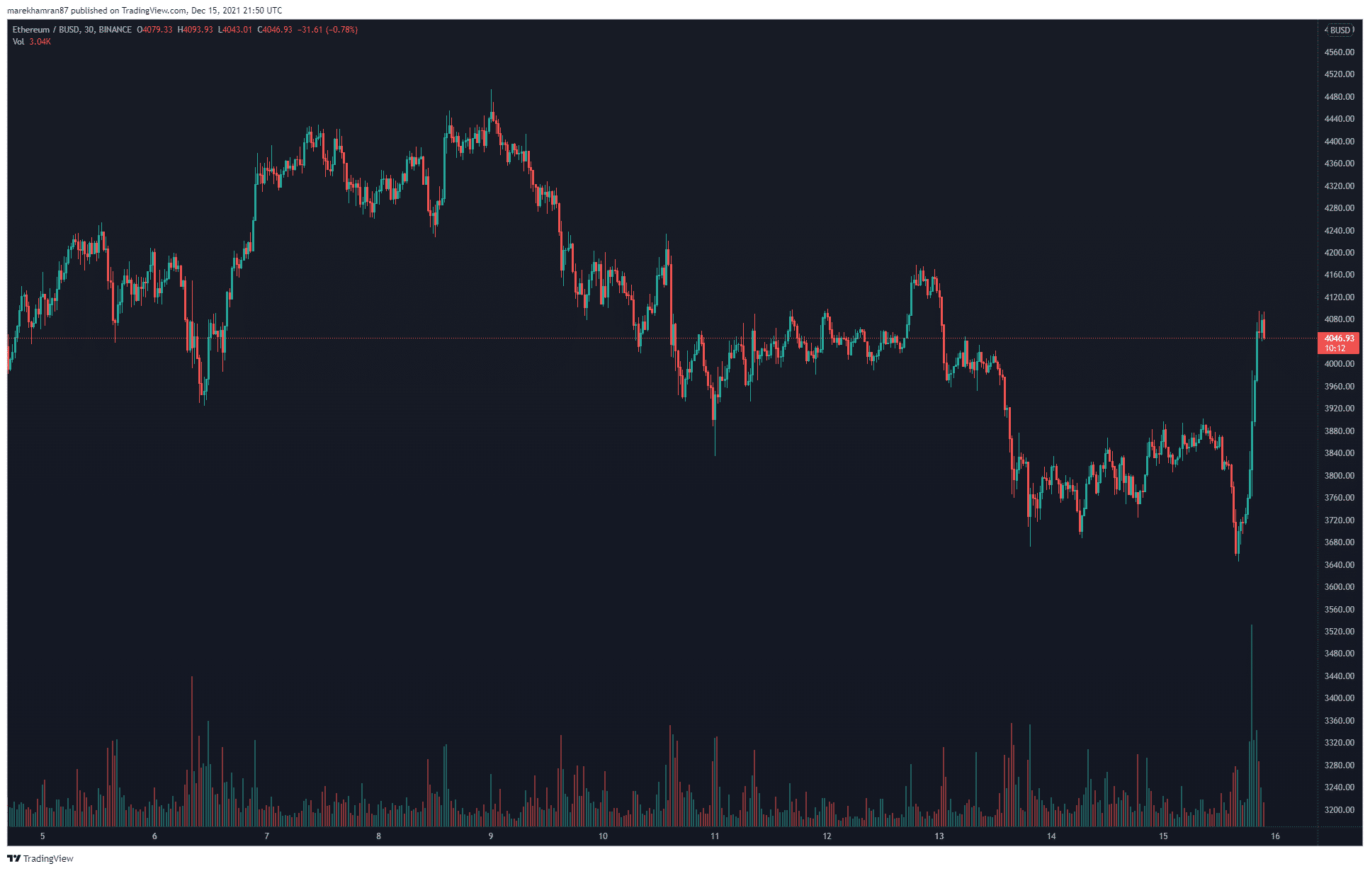 Ethereum vykazuje aj v čase korekcie pomerne dobré výsledky, ktorým určite napomáha aj deflačná politika blockchainu ETH. V čase písania tohto článku sa cena pohybovala na úrovni 4046 USD.