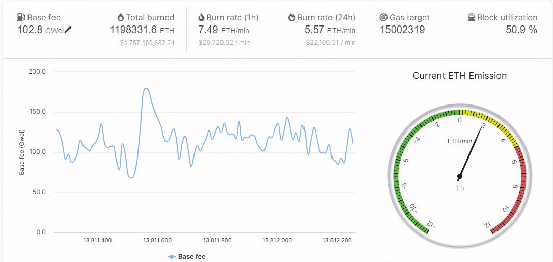 Za posledné hodiny boli spálené tokeny ETH v hodnote viac ako 817 000 USD. Vyššia miera spaľovania sa však dokázala udržať krátko, keďže sa sieť veľmi rýchlo stabilizovala. V čase písania tohto článku bolo spálených takmer 1,2 milióna ETH, čo predstavuje hodnotu 4,8 miliardy USD. V momente, keď sa ETH obchodovalo na vyšších cenových hladinách, predstavovala hodnota spálených mincí viac ako 5 miliárd USD. Toto číslo predstavuje 20 % priemerného denného objemu obchodov ETH.