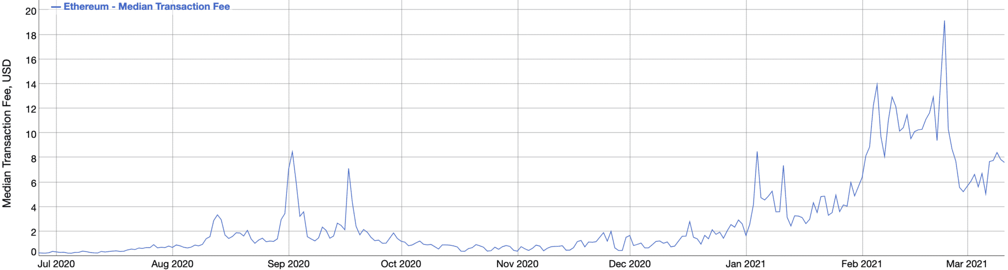 Veľkú časť zisku minerov v súčasnosti tvoria transakčné poplatky, ktoré stúpli na rekordné hodnoty. Medián sa pohybuje okolo 7-8 dolárov a koncom apríla to bolo až 19 dolárov.
