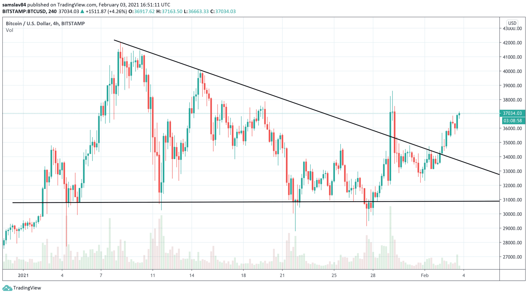 Bitcoin tiež potešil, keďže po prerazení klesajúcej trendline pokračuje v raste a dáva nám tak signál, že začína nový bullrun. Iste, do nového ATH ostáva prekonať ešte päť tisíc dolárov a je pred nami okrúhla hladina 40 000 $, ale zatiaľ to vyzerá celkom nádejne. Dosiahnutie nového ATH bude posledným potvrdeím, že prichádza niečo veľké