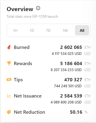 Od implementácie spaľovacieho mechanizmu EIP-1559 bolo spálených až 3,6 miliardy dolárov v tokenoch ETH. Množstvo spálených mincí z aktuálnej ceny Etherea presiahlo 2,6 milióna tokenov.