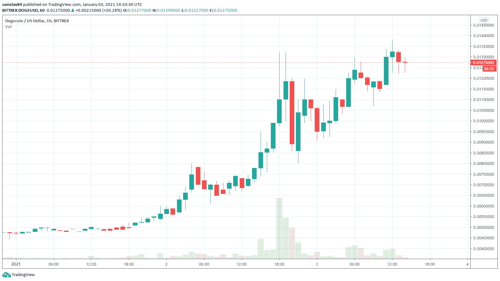 Ethereum za posledných 24 hodín zvýšilo svoju hodnotu o 17%. Bitcoin pritom zvládol „iba“ 10%. Litecoin však prekonal obe kryptomeny, keď sa dostal nad 150 $. Najviac však prekvapil Dogecoin, ktorý spravil 82% za 24 hodín! Neskutočné. V tomto roku sa hodnota tohto meme coinu zvýšila z 0,004 $ na súčasných 0,012 $. To činí zisk 200%