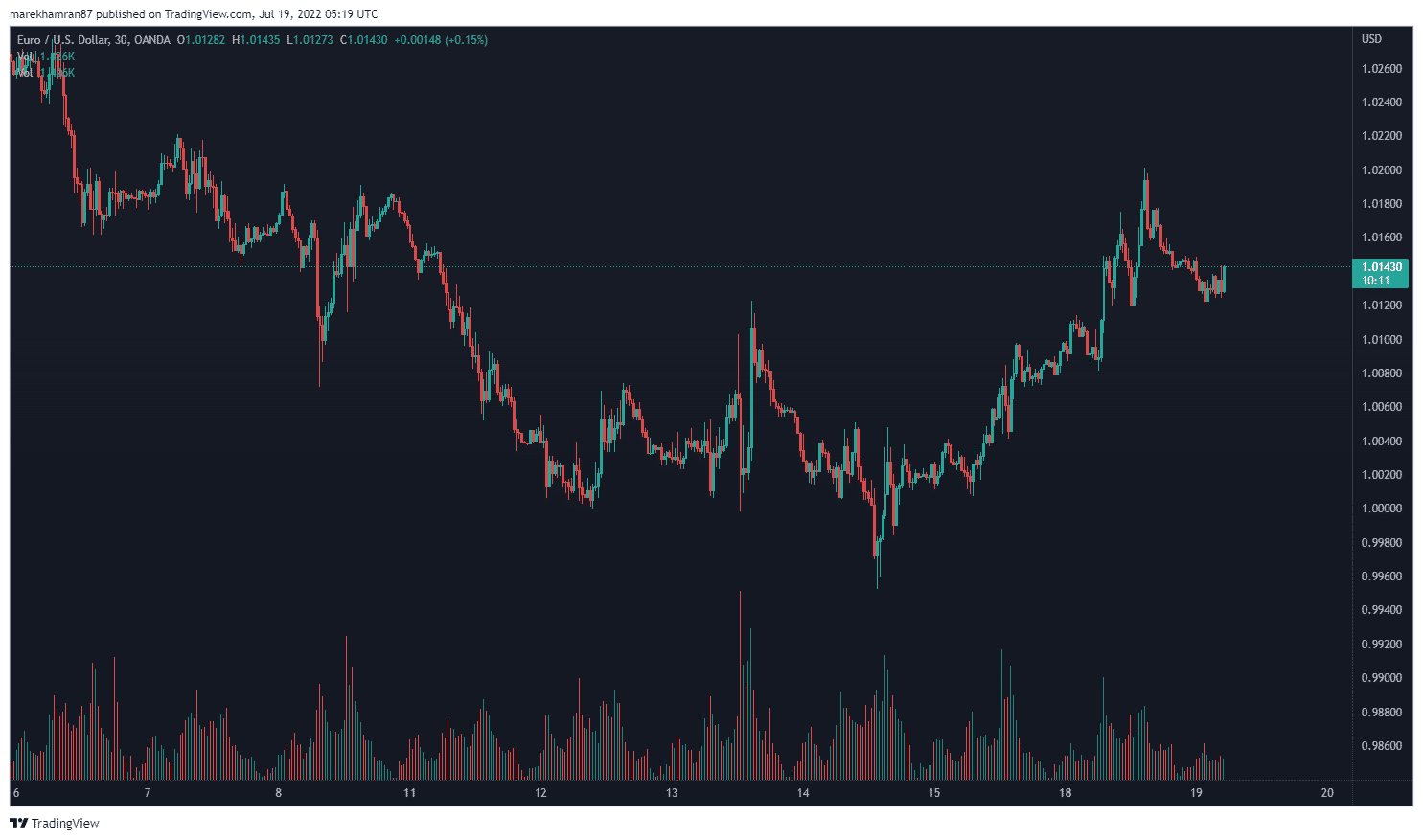 Európska centrálna banka, ktorá stanovuje referenčné kurzy, určila pred víkendom cenu Eura na 1,0059 USD. Dnes je však situácia ešte pozitívnejšia. V čase písania tohto článku sa cena pohybovala na úrovni 1,01431 USD.