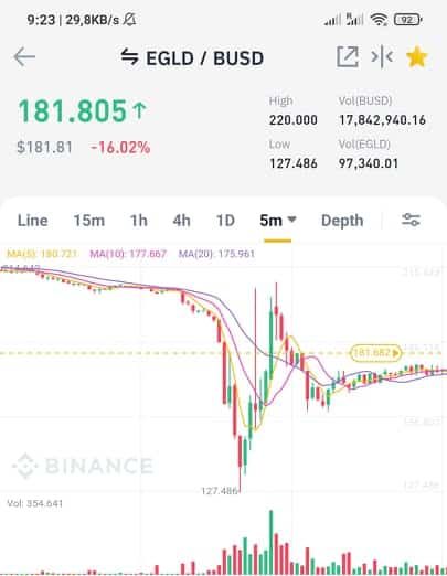 Zameriam sa len na týchto robotov, ktorých používam ja. V skratke, princípom robota, ktorého používam, je postupne dokupovať počas prepadu a priemerovať jeden výsledný predaj v zisku. Vďaka takémuto bleskovému prepadu dokáže nakúpiť veľké množstvo za nízke ceny a následne rýchlo predať počas pullbacku. Takýto flash crash však „rozbúri vlny“ v grafe a volatilita je obrovská, čo opäť ešte viac vyhovuje robotovi. Na obrázku nižšie môžete vidieť jeden z párov, kde mám robota. Za polhodinu dokázal robot niekoľko krát veľa nakúpiť a predať všetko so ziskom. Počas obdobia 2 hodín urobil tento robot 174 obchodov s pekným ziskom.